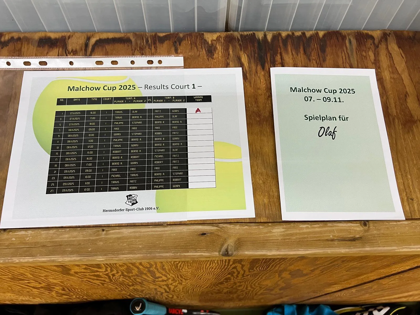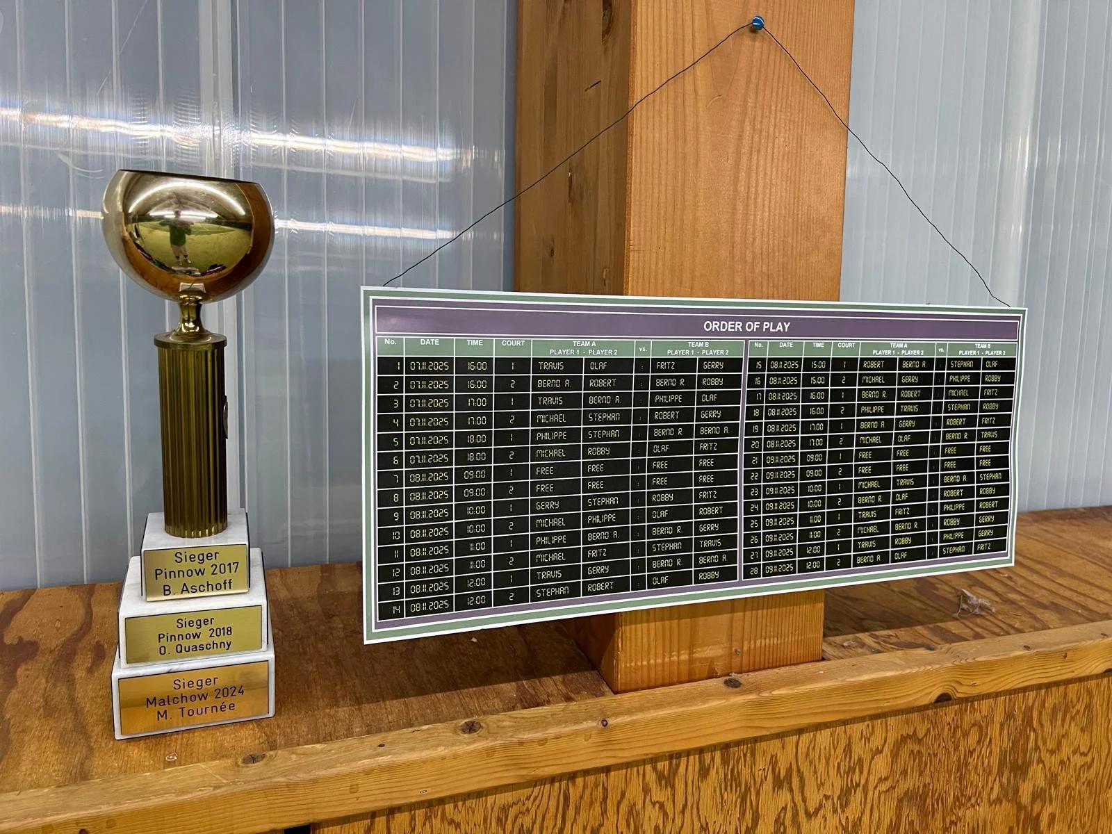 Unglaublich aber wahr: Seit 12 Jahren spielen wir den Pokal in Pinnow und seit 4 Jahren in Malchow aus. Aber noch nie waren alle 12 Spieler dabei. Eine Premiere. Olaf hatte sich schon früh bereit erklärt, die Spielplanung des Doppel-Turniers für 2025 zu übernehmen, mit der Ansage, sich mal etwas Neues einfallen zu lassen. Wir waren alle sehr gespannt. Erst zwei Wochen vor der Abreise bekamen alle Spieler ein Video, in dem er seine Idee vorstellte.